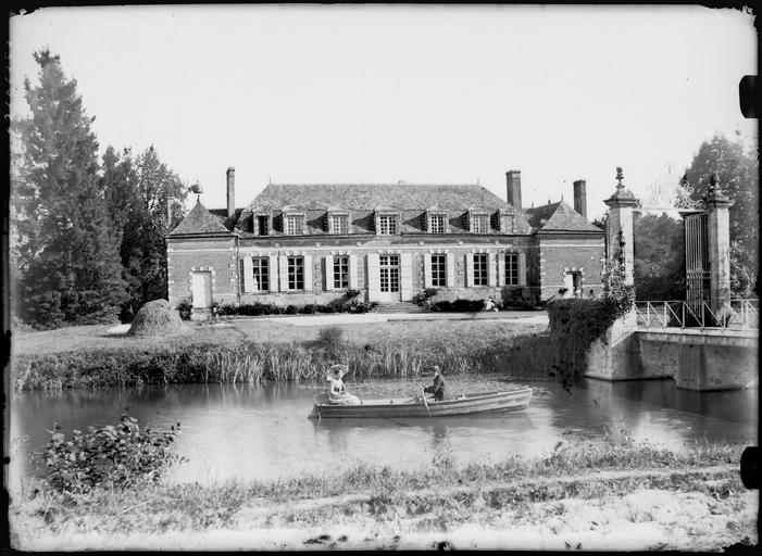 POP | Plateforme ouverte du patrimoineEnsemble avec portail d'entrée et pont, couple dans une barque sur la rivière