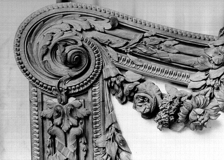 POP | Plateforme ouverte du patrimoineChevet du lit de Marie-Antoinette en bois sculpté restitué en 1967, motif angulaire