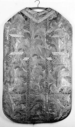 Chasuble brodée de fils d'or, revers, décor de feuillages