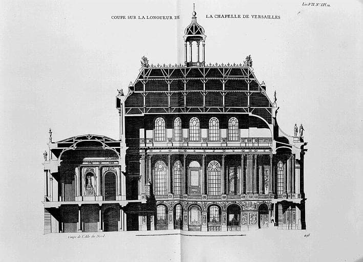 POP | Plateforme ouverte du patrimoineGravure : Coupe sur la longueur de la chapelle, aile nord