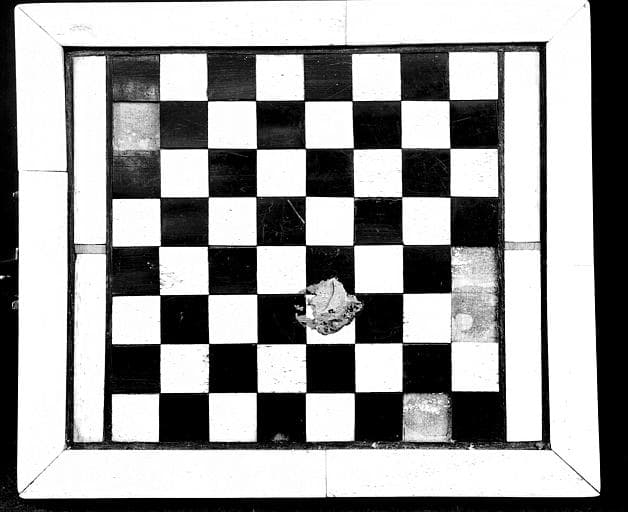 Coffret à jeu, échiquier et tric-trac en bois et os, dessous de l'échiquier