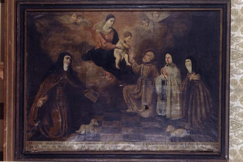 tableau ex-voto : Vierge à l'Enfant, saint Félix, sainte Agnès, sainte Colette et le prévôt d'Aguillenqui, vue générale