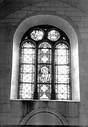 POP | Plateforme ouverte du patrimoineDeuxième vitrail du transept moderne : deux médaillons dans les oculi, panneau de vitrail