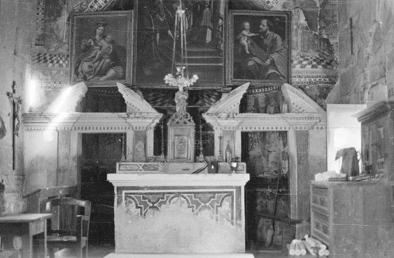 Intérieur : choeur orné de tableaux couvrant les peintures monumentales