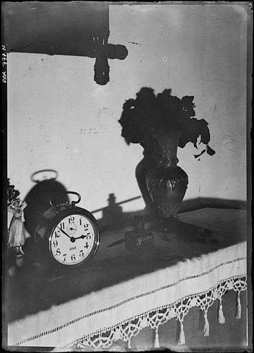 POP | Plateforme ouverte du patrimoineRéveil Jaz, bouquet de fleurs dans un vase et encrier sur une étagère