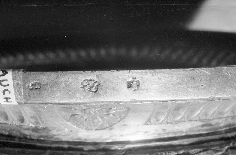 Calice en argent : poinçons sur le bord du pied (avec étiquette de localisation)