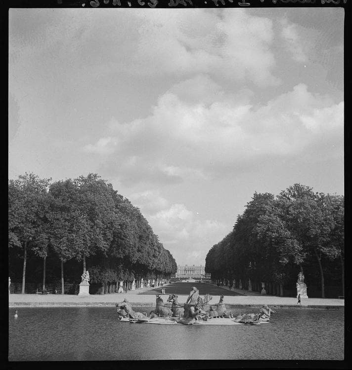 Bassin d'Apollon : Vue prise vers l'allée Royale et le château