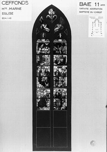 POP | Plateforme ouverte du patrimoineNativité, Adoration, Baptême du Christ, panneau de vitrail, baie 11