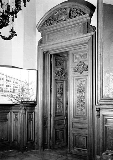 POP | Plateforme ouverte du patrimoinePetit salon, porte en bois sculpté ouvrant sur le grand salon
