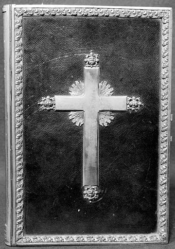 POP | Plateforme ouverte du patrimoineMissel daté de 1494 à reliure en cuir rouge avec couverture et croix en argent doré du début du XIXème, sacristie