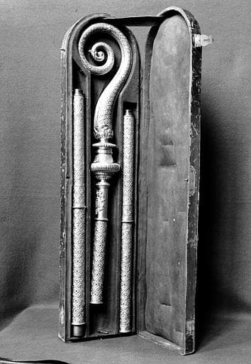Crosse entièrement décorée de fleurs de lys, doré, sacristie