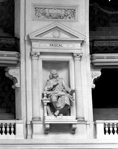 Statue dans une niche de pilier du grand amphithéâtre : Pascal