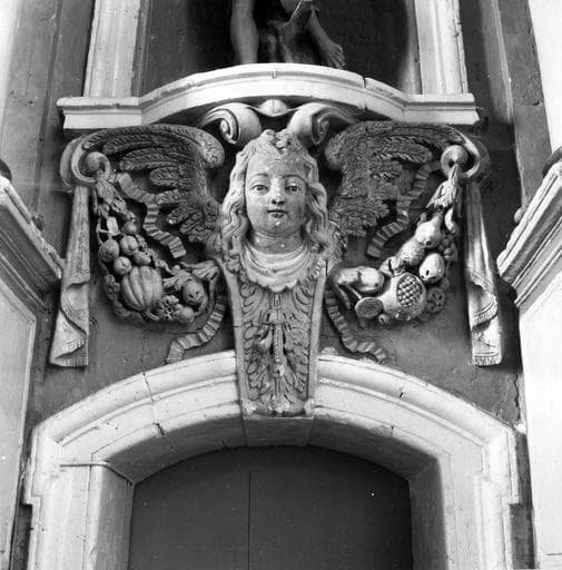 POP | Plateforme ouverte du patrimoineretable du maître-autel, détail d'une console sculptée, tête d'ange, sous la niche de la statue de saint Sébastien