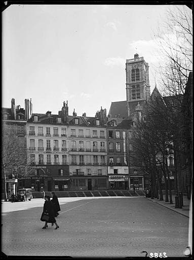 POP | Plateforme ouverte du patrimoineVue sur le clocher de l'église Saint-Gervais-Saint-Protais et enseignes de commerces