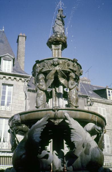Fontaine, partie supérieure : sculptures d'animaux, statue