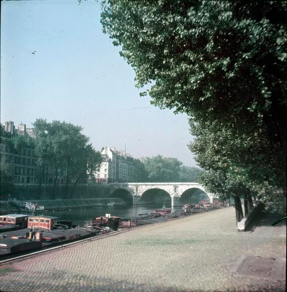 POP | Plateforme ouverte du patrimoineVue sur le pont, péniches à quai et bord de Seine