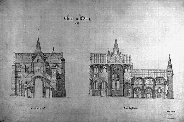POP | Plateforme ouverte du patrimoineCoupe longitudinale. Coupe transversale sur la nef