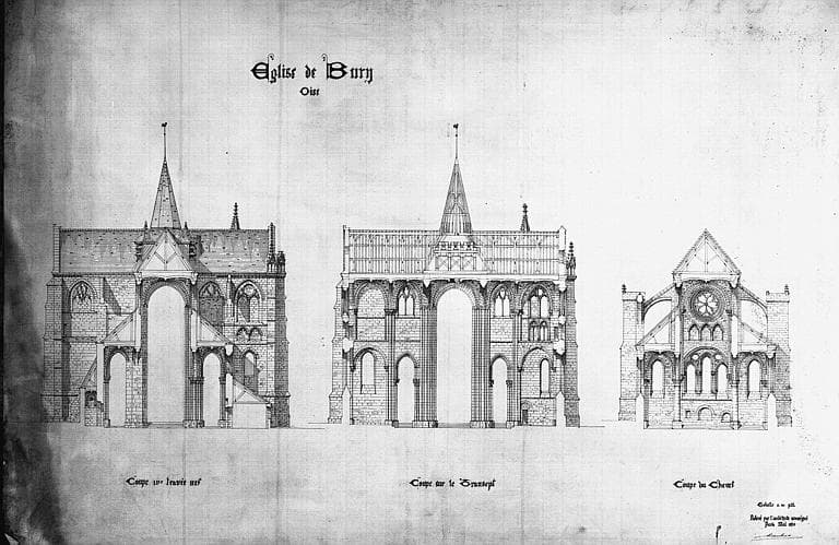 POP | Plateforme ouverte du patrimoineCoupes transversales sur la 1e travée de la nef, sur le transept et sur le chevet