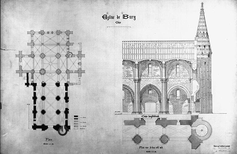 Plan archéologique. Plan et coupe longitudinale partielle sur le bas-côté sud