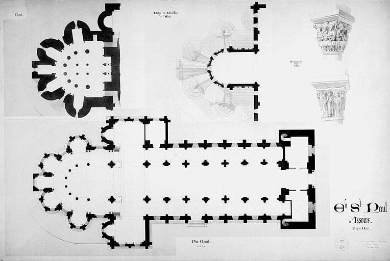 POP | Plateforme ouverte du patrimoinePlan général. Plans de la crypte et de la toiture. Chapiteaux
