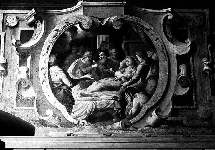 POP | Plateforme ouverte du patrimoinePeinture murale de la chapelle Sainte-Anne (registre au-dessous de la coupole) : Mort de la Vierge
