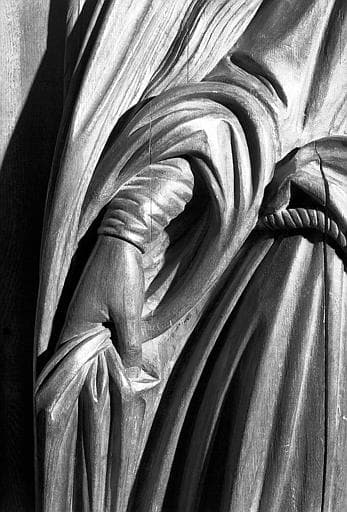 POP | Plateforme ouverte du patrimoineHaut-relief en bois : Deux anges de part et d'autre d'un médaillon (détail de la main de l'ange de gauche)