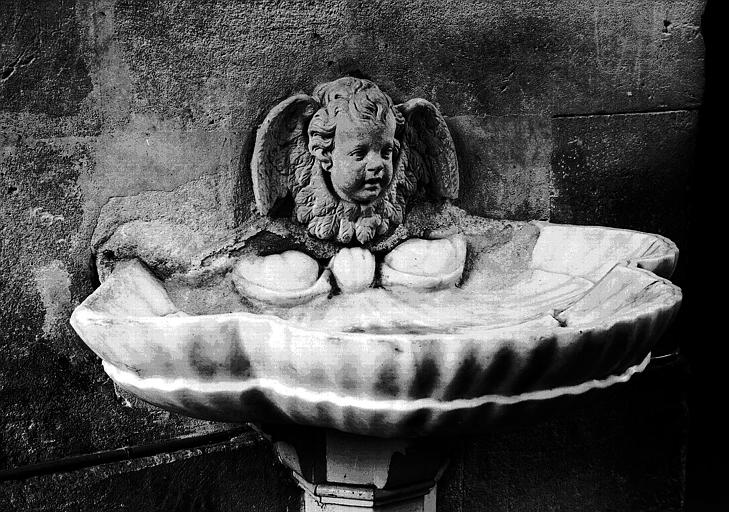 POP | Plateforme ouverte du patrimoineBénitier en marbre, surnonté d'une tête d'ange en pierre
