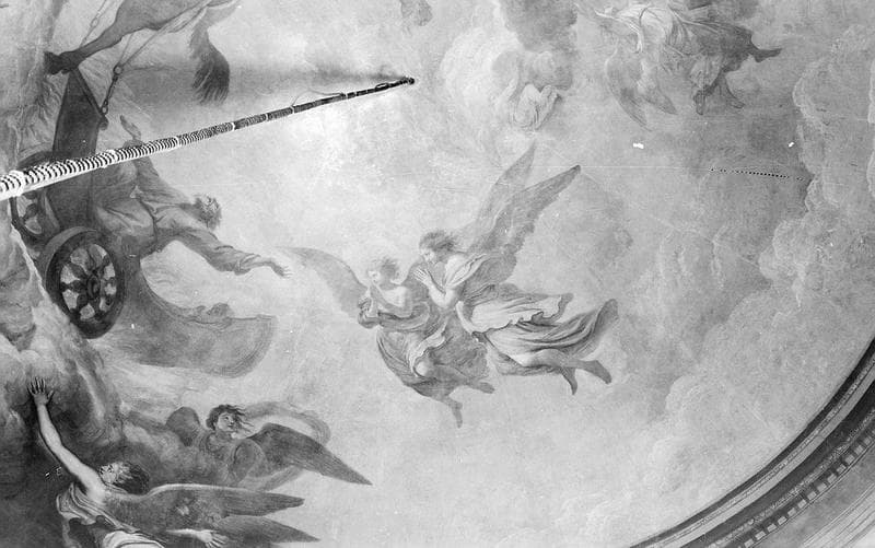 Peinture murale de la coupole : angelots soutenant la voûte céleste et accompagnant le char