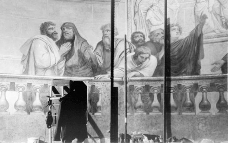 Peinture murale entre les fenêtre sous la coupole (grisailles) : Saint Albert, confesseur