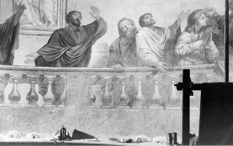 Peinture murale sur le tambour de la coupole : Apôtres autour d'Elisée