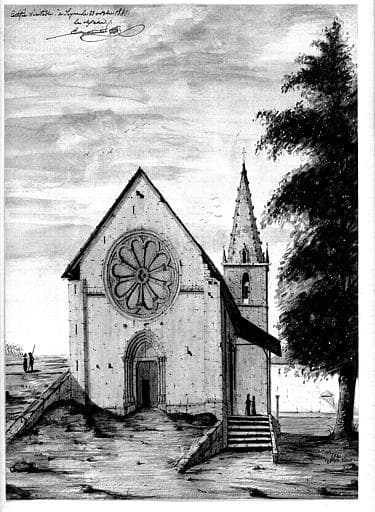 Dessin aquarellé : Façade ouest et clocher