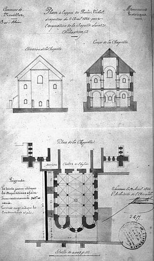 POP | Plateforme ouverte du patrimoineChapelle de Saint-Sébastien (adossée au choeur de l'église) : Plan, coupe, élévation