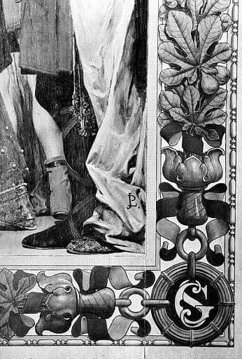 Peinture murale : Bordure et monogramme 'SG' (détail du panneau de droite de la Mort de sainte Geneviève)