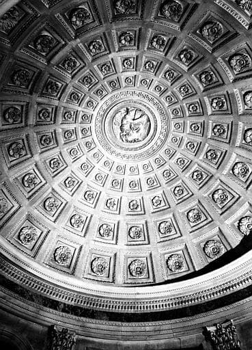 POP | Plateforme ouverte du patrimoineCoupole à caisson de l'ancienne sacristie avec un médaillon sculpté : Ange écrivant l'histoire de sainte Geneviève