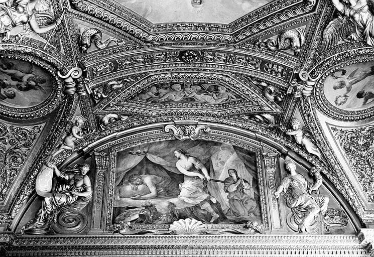 POP | Plateforme ouverte du patrimoineAppartements d'Anne d'Autriche, plafond peint de la salle des Antonins (ancienne chambre) : Judith et Holopherne (lunette)