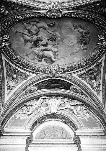 Appartements d'Anne d'Autriche, Salon de la Paix : Vue d'ensemble du plafond vers la porte