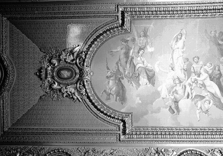 POP | Plateforme ouverte du patrimoineSalle d'Auguste, plafond peint (partie gauche du panneau principal) : L'Assemblée des Dieux, et portrait d'Eugénie en médaillon