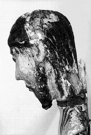 POP | Plateforme ouverte du patrimoineChrist en croix en bois polychrome : Profil gauche de la tête