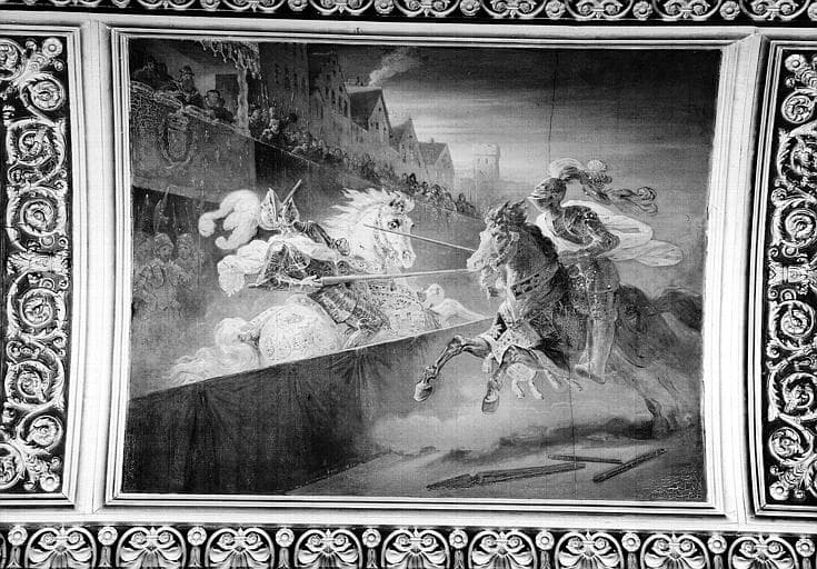 Galerie Campana, voussure peinte de la 5e salle : Tournoi de 1559 dans lequel Henri II fut mortellement blessé par Mongomery