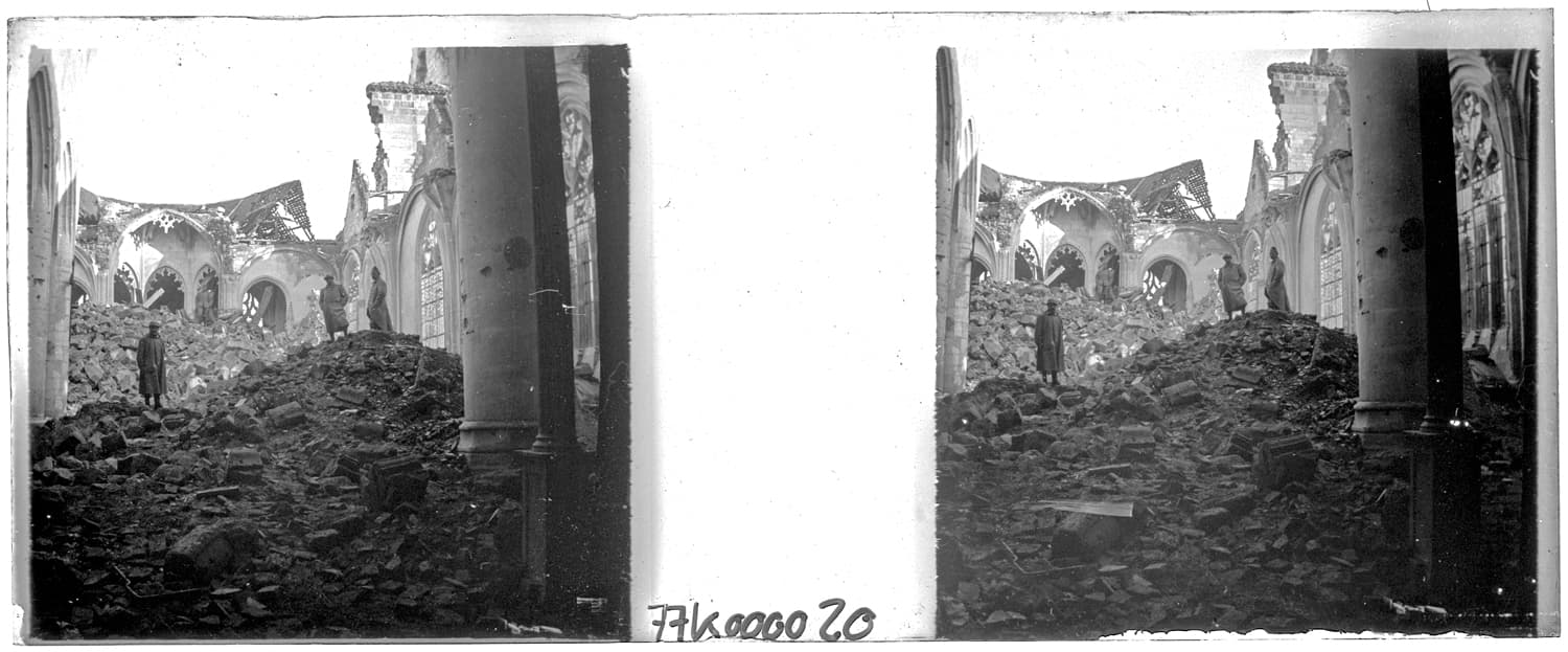 POP | Plateforme ouverte du patrimoineNef en ruine. Effets du bombardement. Soldats