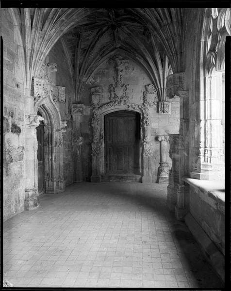 POP | Plateforme ouverte du patrimoineExtrémité de la galerie est du cloître : porte surmontée d'une crucifixion