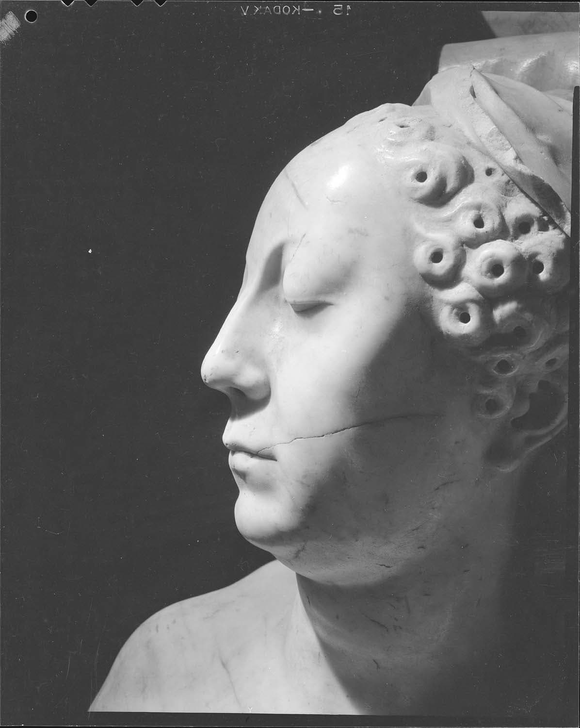 Tombeau de Henri II et Catherine de Médicis : transi de Catherine de Médicis (visage de profil)