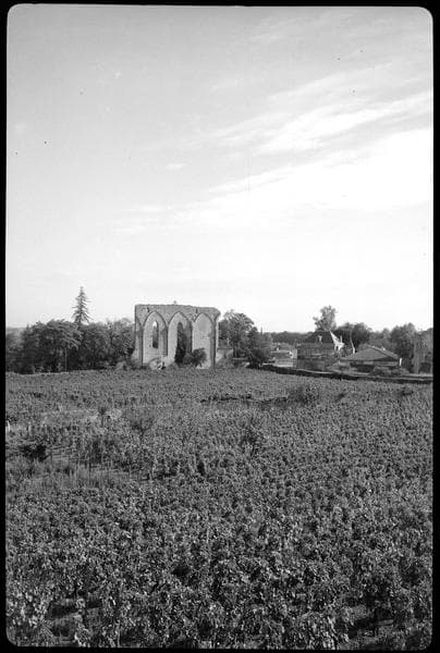 Restes de la première église : grand mur gothique au milieu des vignes dit la Grande Muraille depuis le domaine du Clos Fourtet