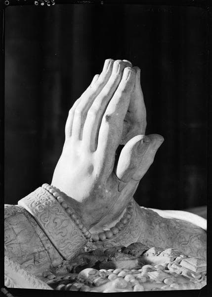 POP | Plateforme ouverte du patrimoineDétail du tombeau de Catherine de Médicis : les mains du gisant, verticales, paume contre paume