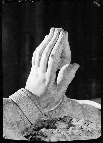 POP | Plateforme ouverte du patrimoineDétail du tombeau de Catherine de Médicis : les mains du gisant, verticales, paume contre paume