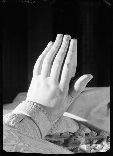 POP | Plateforme ouverte du patrimoineDétail du tombeau de Catherine de Médicis : les mains du gisant, verticales, paume contre paume