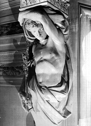 Grand escalier : Cariatide de gauche en pierre, détail du buste
