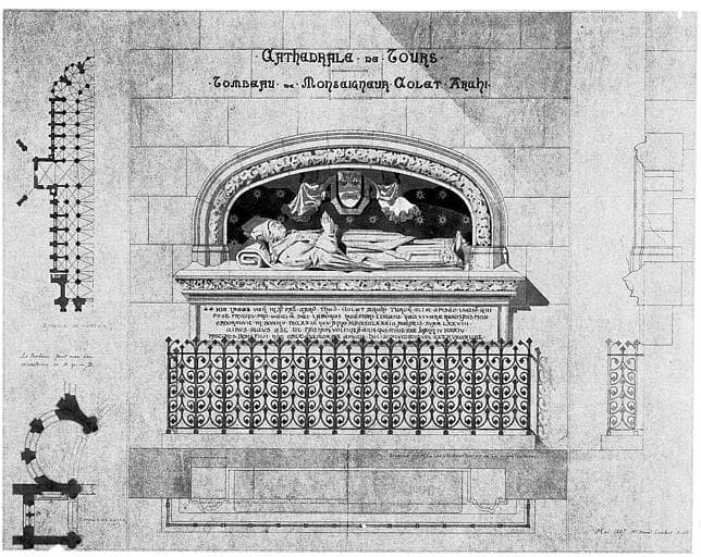 Tombeau de Monseigneur Colet, archevêque : Elévation et plan de situation