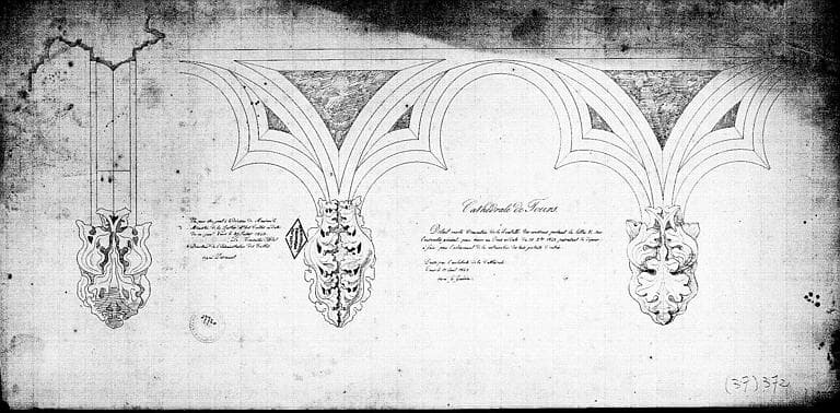POP | Plateforme ouverte du patrimoineRestauration des parties hautes de la tour sud, côté sud, entre la 1e et la 2e balustrade : Elévation et plan
