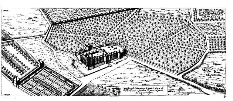 POP | Plateforme ouverte du patrimoineGravure : Vue de l'ensemble du lieu de Vallery avec le jardin...